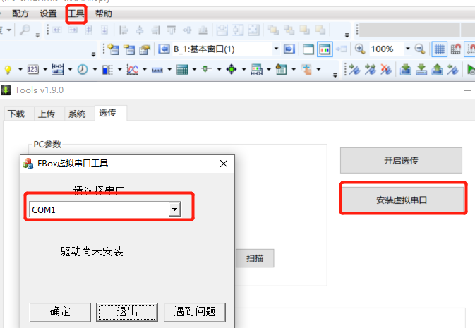 安裝虛擬串口,點擊工具 → 下載 → 透傳 → 安裝虛擬串口。